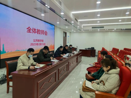 2023年2月16日周四上午9点,公共教学部在仲景文化中心7楼会议室召开全体教师会议。公教部李巍书记主持会议,马纪伟主任做重要讲话,部门全体教师参加。