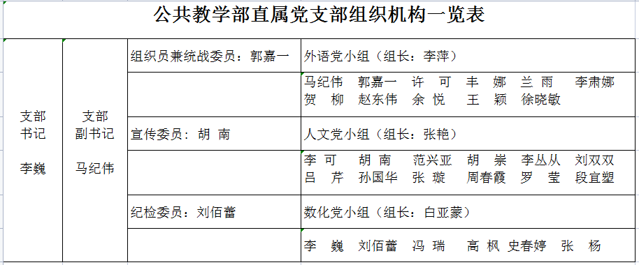 上一篇:公共教学部直属党支部组织机构一览表(2023年11月20日后)