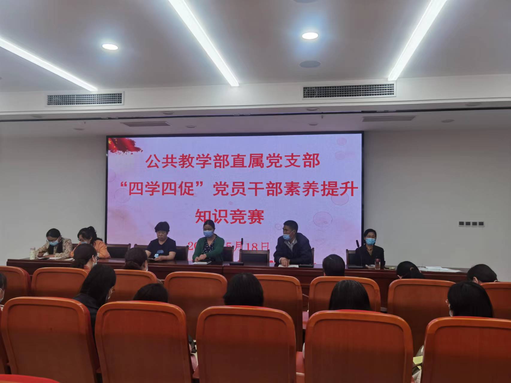 根据学校《关于开展“以学促德、以学促能、以学促养、以学促廉”(四学四促)学习的通知》要求,5月18日下午,公共教学部直属党支部开展“四学四促”全体党员和2021年以来提任的副科级及以上干部素养提升知识竞赛活动,旨在持续贯彻学校“观念能力作风建设年”工作精神,使党员干部更深入探索维系服务工作内涵,提高工作积极性,营造浓厚的学习气氛,切实提升党员干部综合素养。