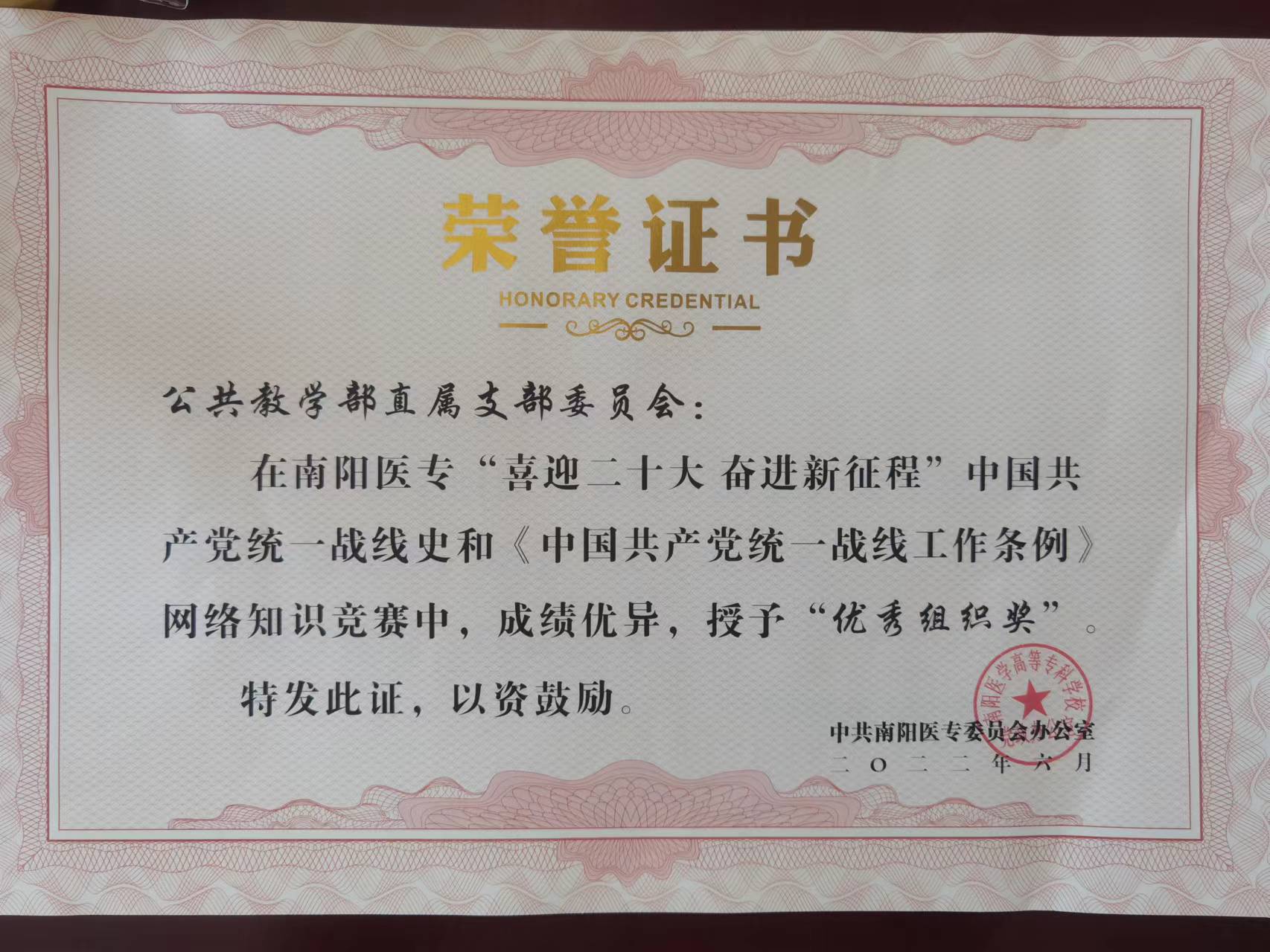《中国共产党统一战线工作条例》网络知识竞赛中荣获佳绩
