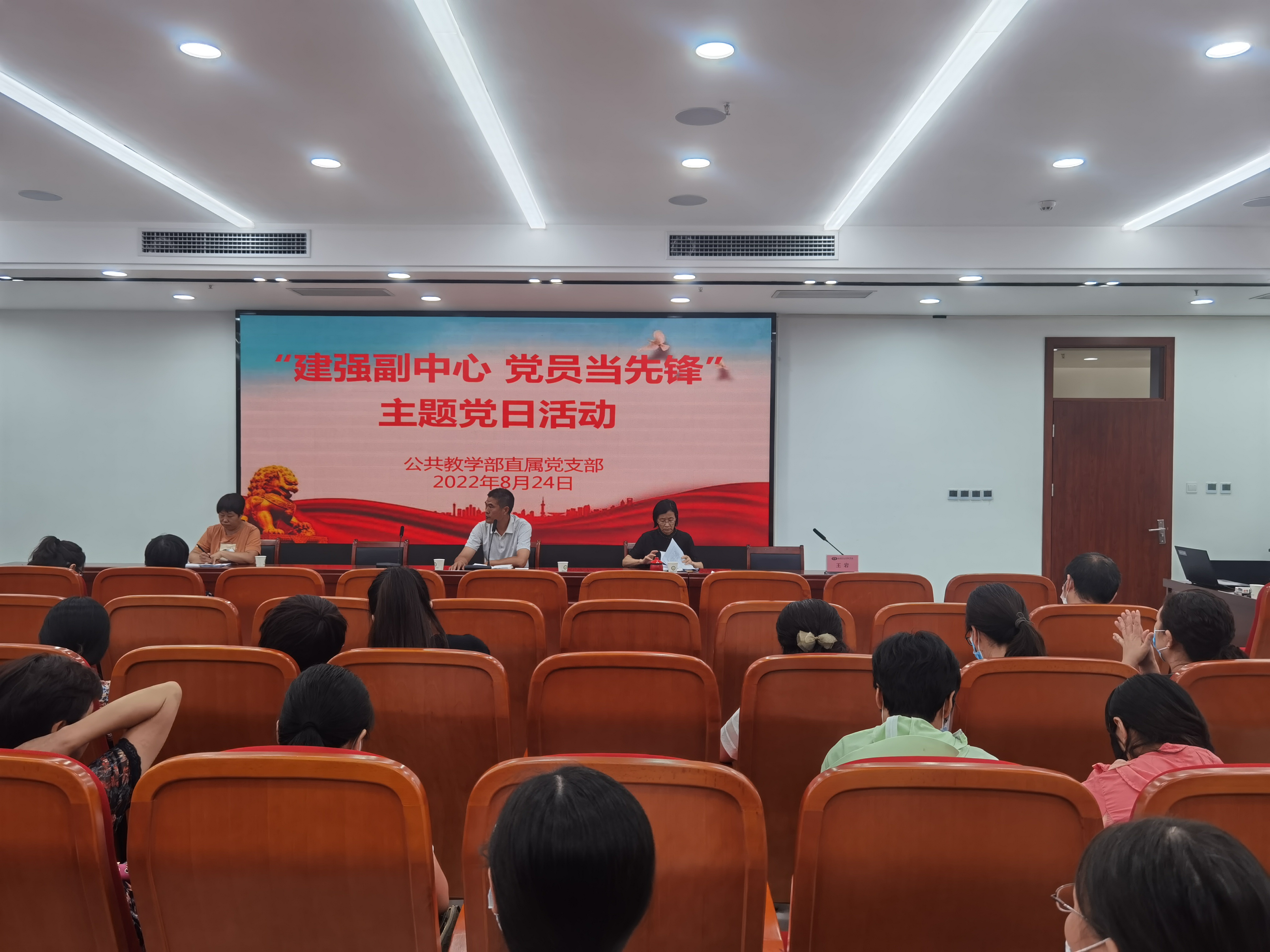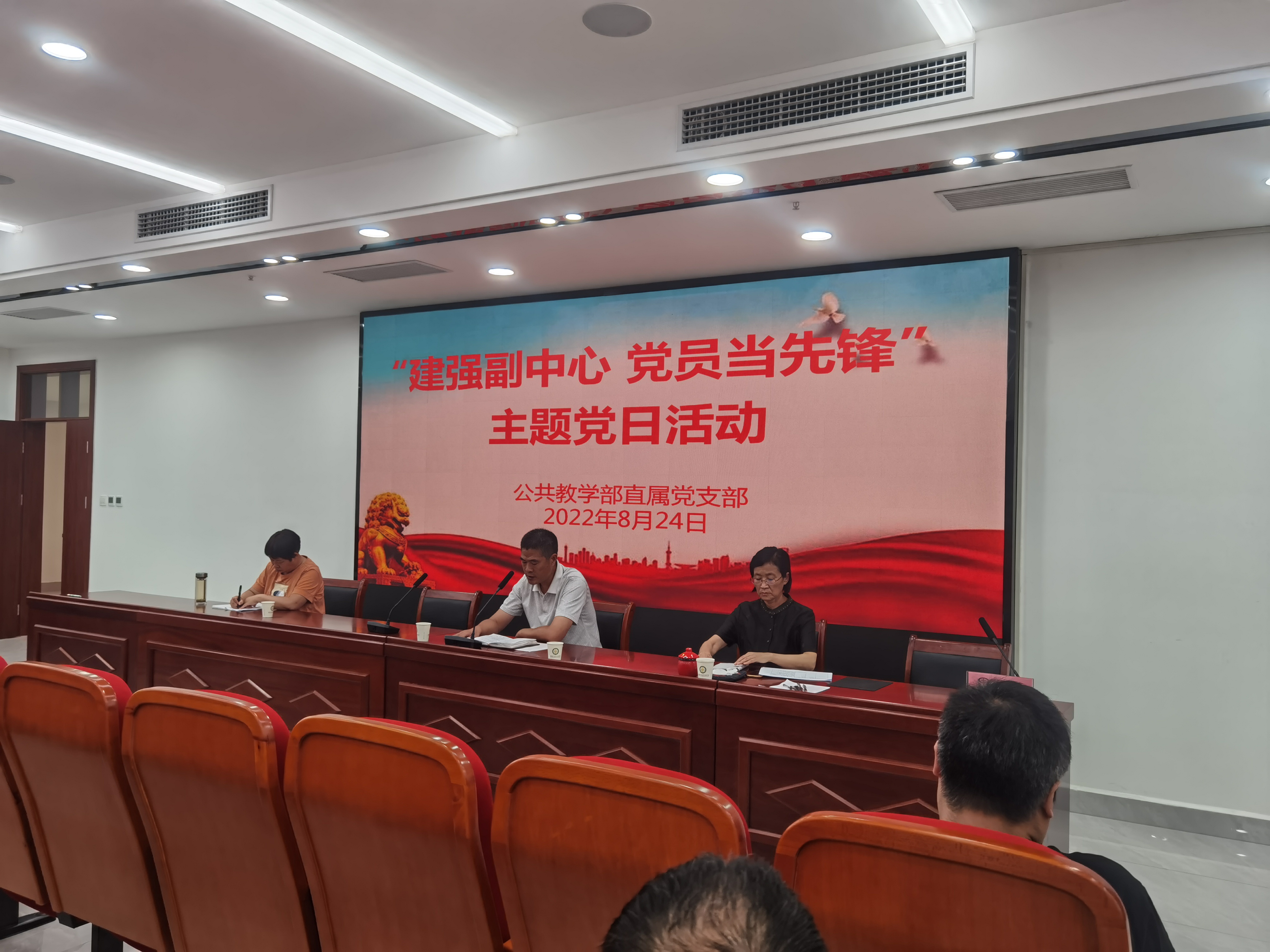 按照市委组织部和学校组织部要求,公共教学部直属党支部于2022年8月24日下午3:00在7楼会议室召开了公共教学部直属党支部开展“建强副中心、党员当先锋”主题党日活动。会议由党支部书记李巍主持,全体教师参加。动员广大党员在为南阳建设现代化副中心城市中走在前、作表率。