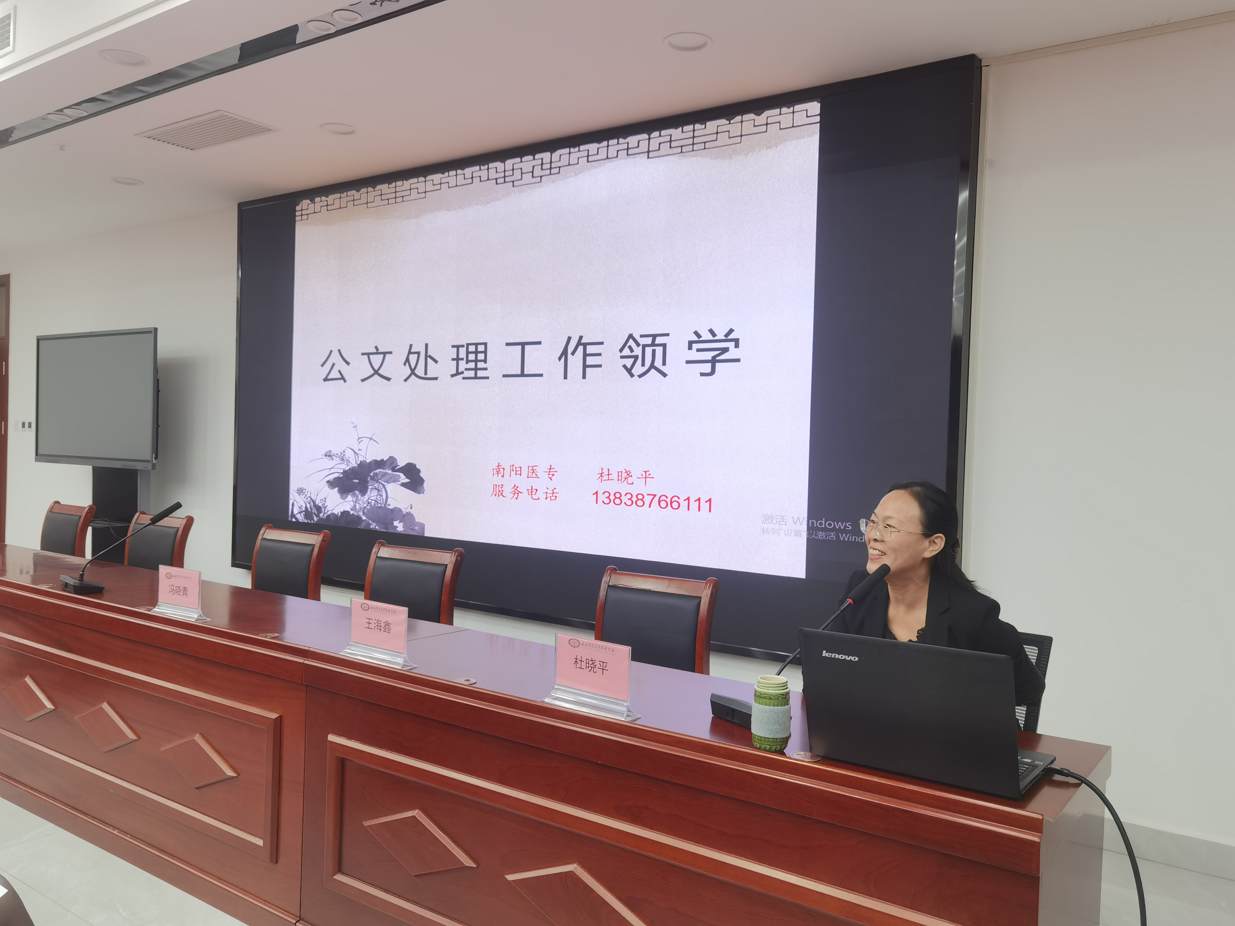 为了提升副科级以上干部的公文写作业务能力,提高行政办公效率。杜晓平部长做了《公文处理工作领学》的专题讲座,用较高的政治站位、精准的学术语言,渊博的知识分别从1.简解条例;2.格式标准;3.公文办理;4.河南规定;5.拓展链接五部分深入浅出,条分缕析、层层剥笋,讲述了公文写作的基础知识,解读了《党政机关公文处理工作条例》的要求,阐述了《党政机关公文格式》对公文的规范格式要求、行文规则、公文起草、校核、签发、审议前初核的相关规定等方面作了详尽叙述。对公文办理提出了“三问”,告诫青年干部写好公文要学好“三堂课”,最后在交流中,提出思考“三业”: 职业、敬业、乐业与大家共勉。