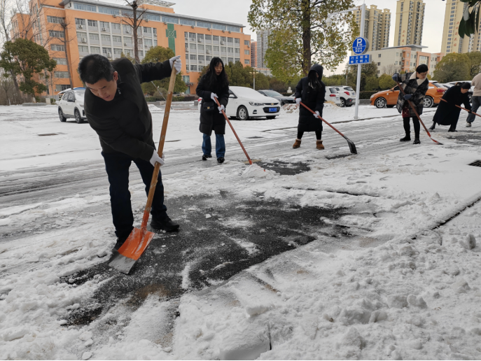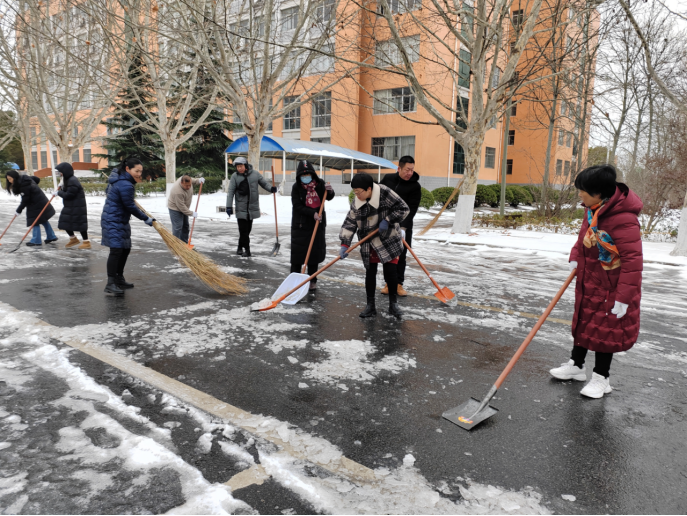为保障师生出行安全,保持道路畅通,保证校园整洁,护理系积极响应学校积雪集中清扫活动,2月22日下午,在护理系主任吕云玲的带领下,副科级以上行管干部和全体辅导员对护理系校园卫生责任区域主干道开展了积雪清扫活动。