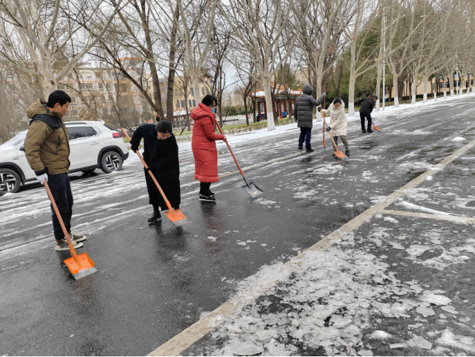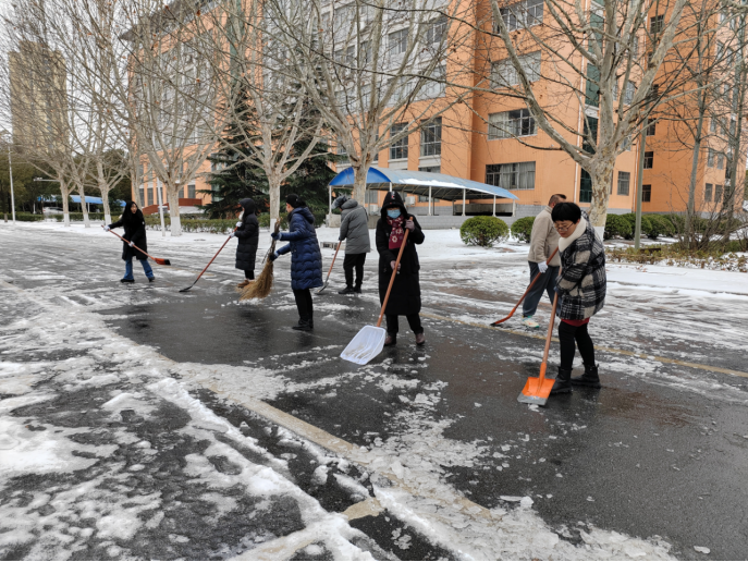 此次积雪清扫活动,充分展现了我校凝心聚力、团结协作、奋力拼搏的精神风貌,也为迎接学生返校、师生通畅出行提供了便利,给这个雪后寒冷的校园带来了暖暖的春意,也给即将开启的新的学期的工作开了一个好头。