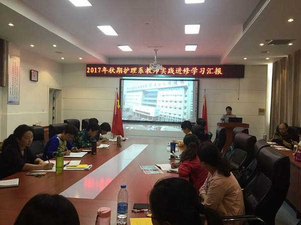本网讯(文/实训室 卢佳璐)为促进教师队伍成长及专业可持续发展,护理系一直坚持“一人学习、多人受益”的宗旨,2017年9月6日下午,在2#教学楼情景模拟中心进行了教师外出学习汇报,系主任及全体教师参加。