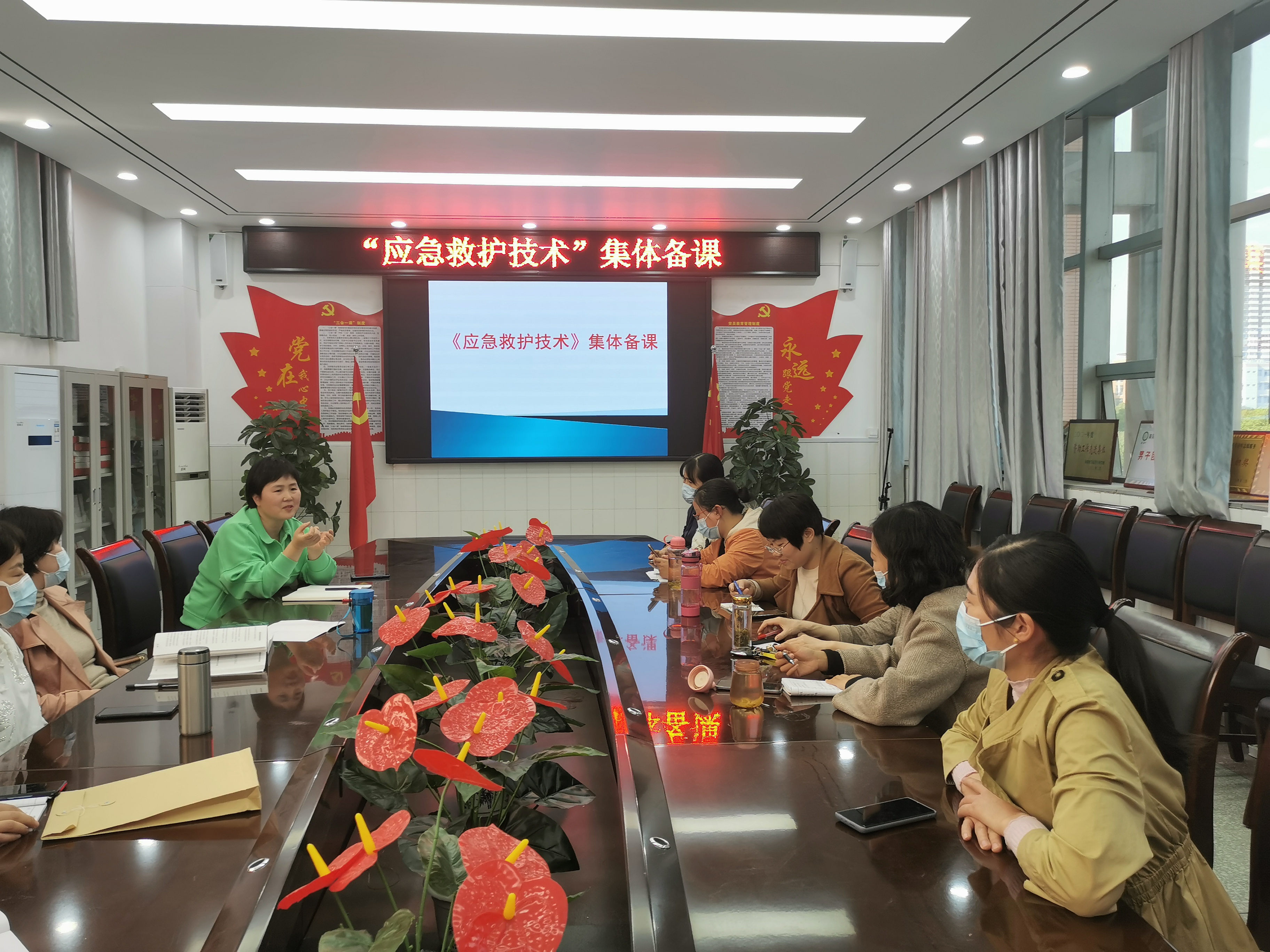 为了《应急救护技术》课程顺利开设,确定该课程的标准、大纲、考核标准等内容,5月4日下午在恒志楼会议室开展了《应急救护技术》集体备课,由护理系副主任吴俊晓主持。吴主任提出,通过学习这门课程,学生应掌握应急救护知识技能,提高学生自救互救能力,在遇到突发事件或意外伤害时能自救互救,以减轻痛苦、减少伤残,为挽救生命争取宝贵时间;同时能参加救护志愿服务,救助生命服务社会。因此,课程标准、考核标准应严格,使人人达标。