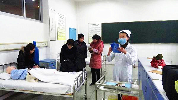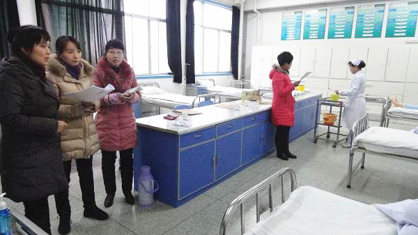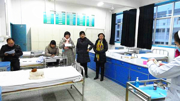 比赛分海选和复赛两个阶段进行。为确保竞赛质量,护理系课余时间开放实训室,分时段分班级强化训练。12月4日至6日在11普大护理学生中进行海选,初赛共分8个考场,每场4位专业教师担任评委,竞赛项目为铺备用床、暂空床和麻醉床,经过初赛156名选手进入复赛。虽然天气寒冷,但是技能大赛复赛于12月26日下午如火如荼照常进行。此次竞赛项目为肌肉注射,由护理系专任教师及实训教师担任评委,严格依据考核标准,要求学生在规定时间内完成操作。参赛选手仪表端庄,态度严谨,动作规范,操作熟练,既展现了较高的专业技能,又体现了护理人文关怀,经过评委综合评定,最终80名优秀学生脱颖而出。