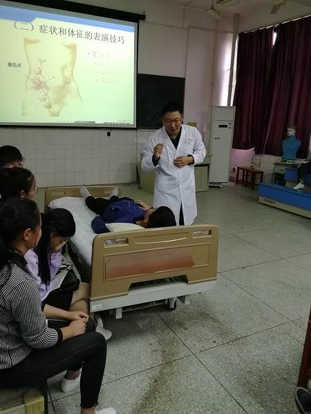 彭晓松老师为我校针灸骨伤系的老师,曾参加过CSPC组织国际SP师资培训班等,并取得国际SP培训师资格。彭老师在SP情景模拟剧本撰写与表演上有独到的见解。在本次讲座中彭老师从SP平生背景的撰写开始讲解,让同学们大开眼界,使大家有种当剧作家的感觉。接着彭老师结合实例给大家分享了如何运用表演技巧展现SP的症状和体征。最后彭老师领着大家总结了综合表演的注意事项。