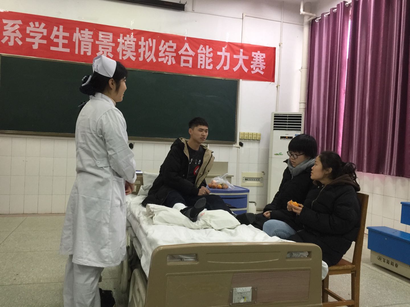 2018年12月12日下午,护理系在2号教学楼四楼示教室举行了2018年秋期护理系护理情景模拟综合能力竞赛的决赛。护理系主任吕云玲、书记梁顺平、副主任张欣、情景剧辅导老师、2017级及2018级兼职班主任、各班学生代表观摩了本次比赛。