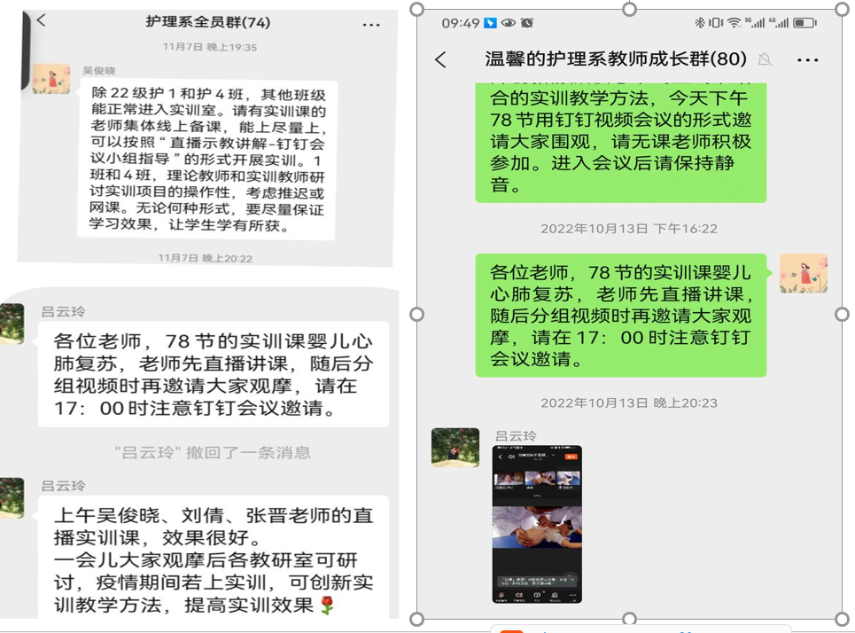 在疫情防控特殊时期,为解决线上实训教学的难题,确保实训教学质量,在护理系副主任吴俊晓的带领下,老师们结合实际,精准施策,灵活运用现有信息资源,创新实训教学。