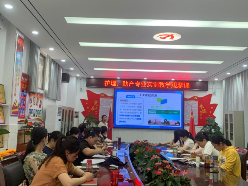 6月19日下午,护理系开展“护理、助产专业实训教学”观摩课活动,邀请朱冉、何红丽两位老师分别就本学期内科护理、社区护理实训教学的理念、设计、实施与评价情况做出汇报。护理系全体教师共同学习。