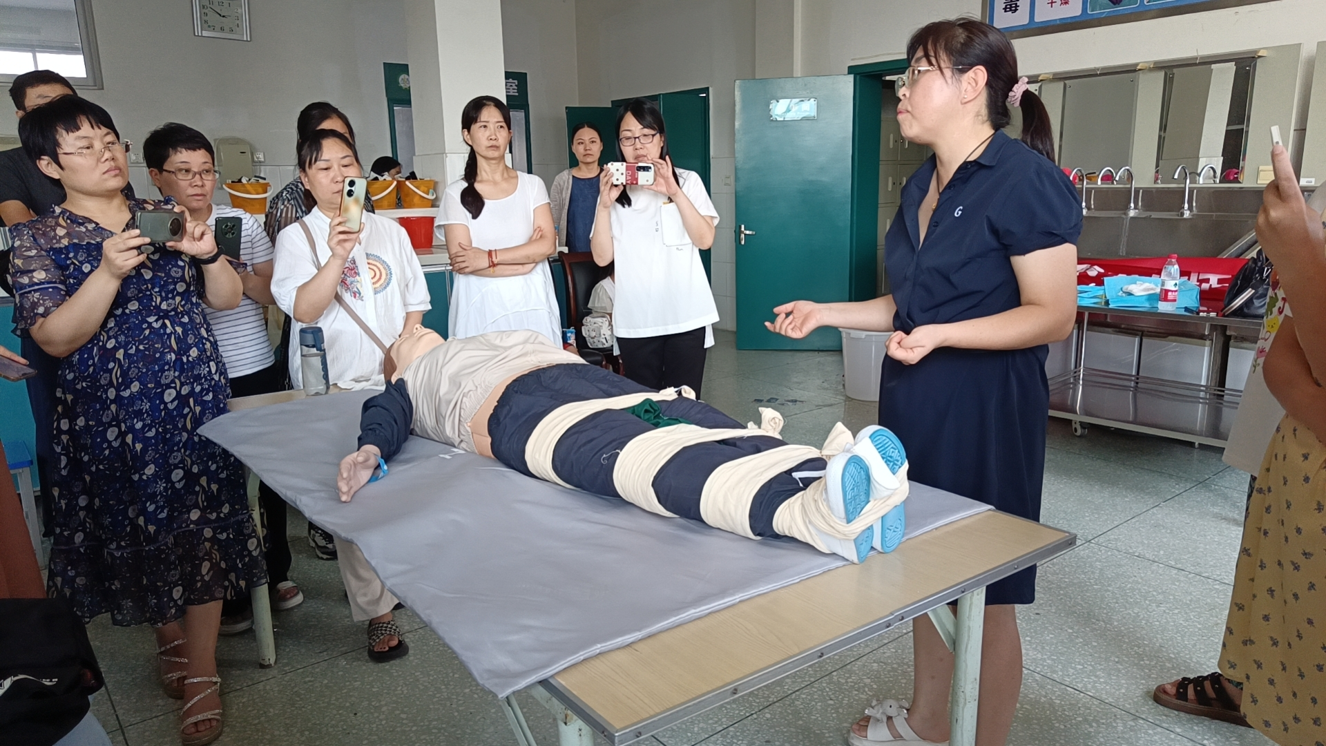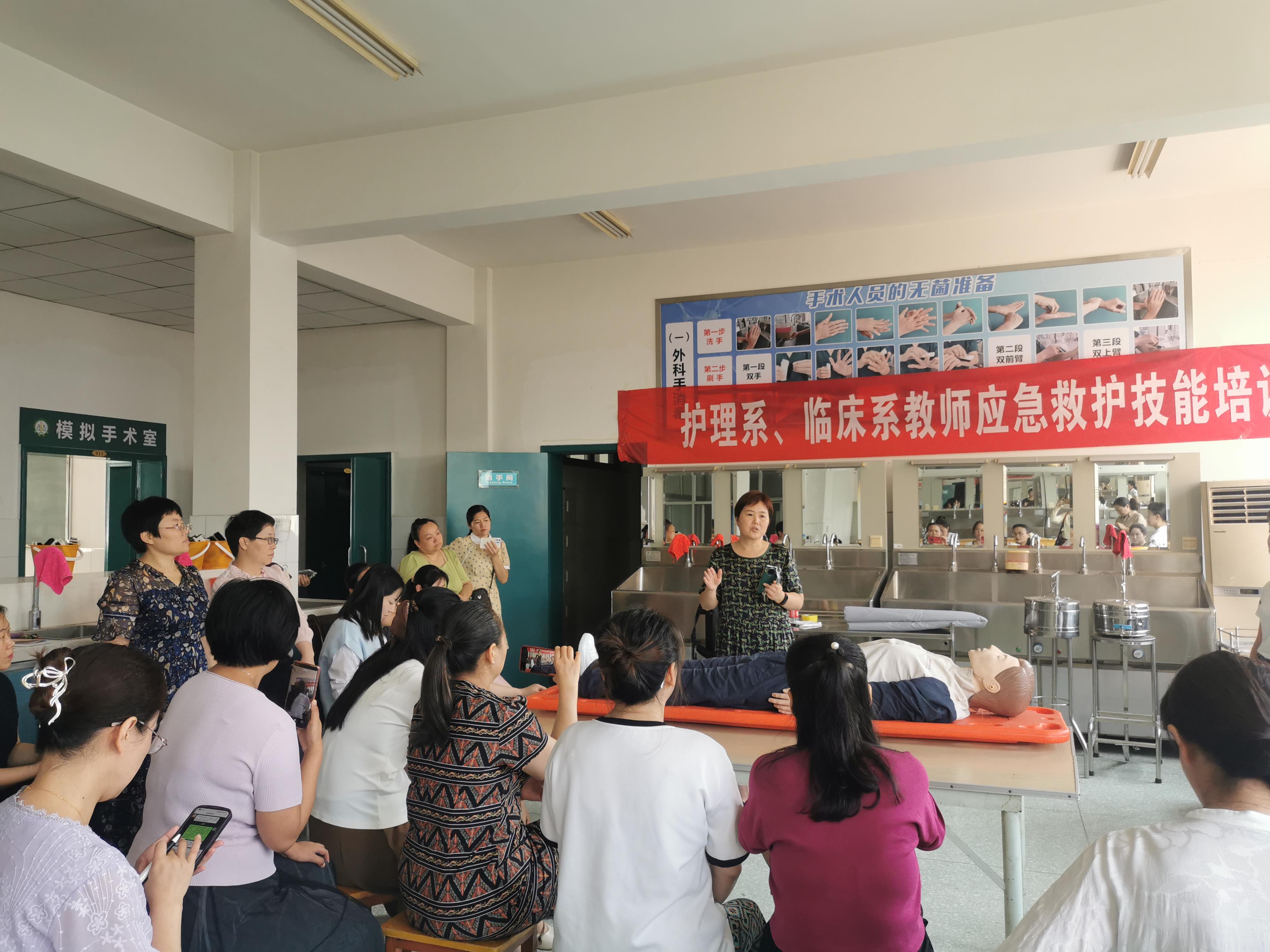 本次新生全员培训规模大、范围广、任务重,为了达到预期的教学效果,护理系于8月30日至9月1日组织全体授课教师开展课前规范化培训。邀请我系李冬梅、刘倩、周琳、陈英、屈晓敏、孙晓再六位教师分别就心肺复苏术、AED的使用、海姆立克急救法、包扎止血、骨折固定、伤情判定转运六项急救技能的操作要领和注意事项进行了细致讲解并现场演示。老师们十分积极踊跃,对每一个步骤都进行反复的练习,力求操作手法达到标准化、规范化。老师们纷纷表示,这次培训既是对于自身急救知识和理念的更新,对于个人教学技能、教学观念也提供了再学习、再提高的机会。