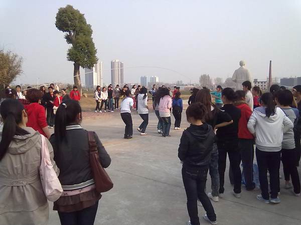 下午在2号教学楼前举办了跳大绳比赛活动。