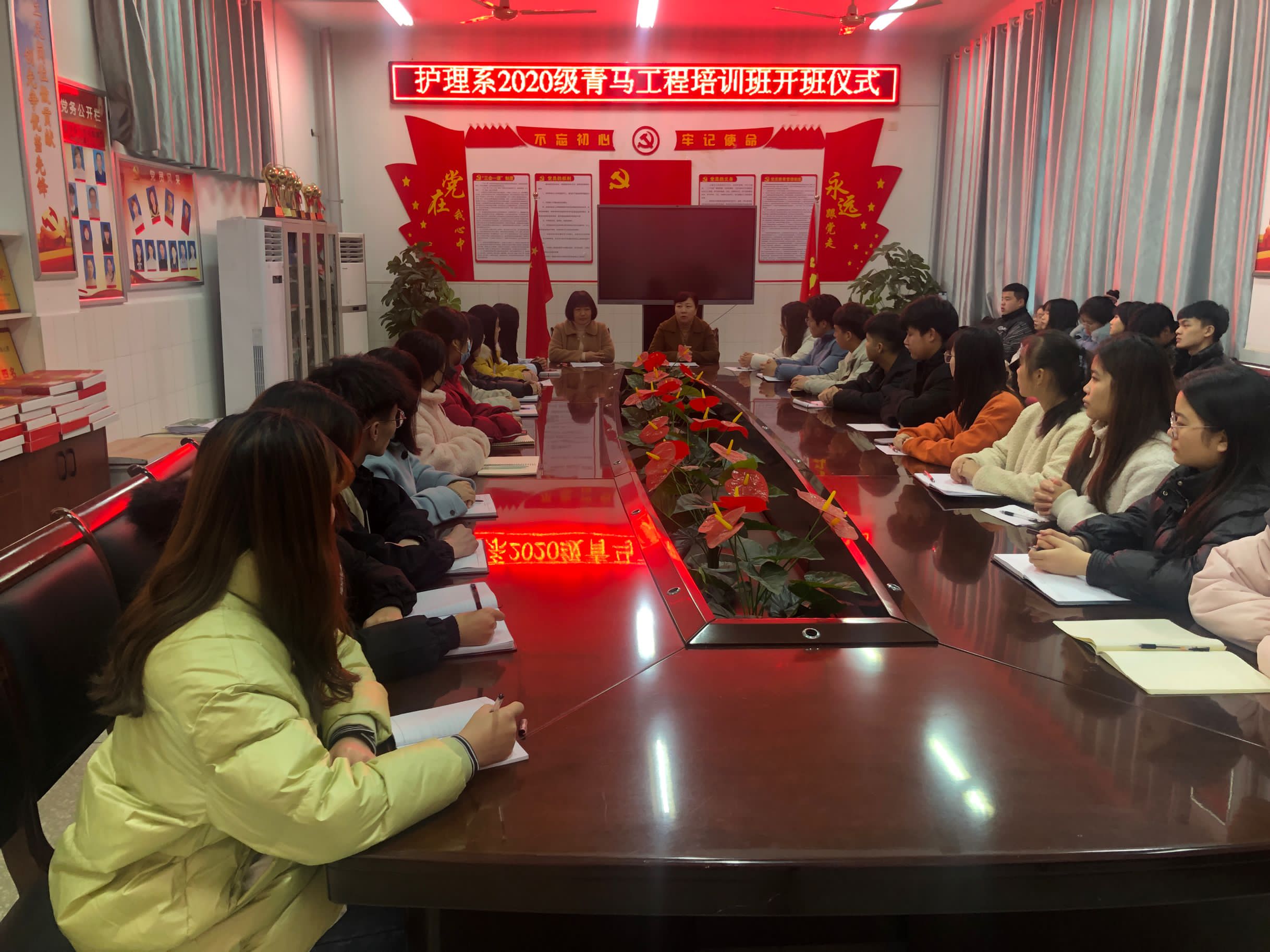 为深入学习宣传贯彻习近平新时代中国特色社会主义思想和党的十九大精神,全面落实团中央《“青年马克思主义者培养工程”实施纲要》要求,按照宛医专团 [2020]20号《关于开展2020年度南阳医专各院(系)“青马培训班”工作的通知》要求,2020年12月2日下午,护理系学管党支部在2号教学楼3楼党员活动室举办了20级青马培训班开班仪式。本期青马培训班由20级各班班长、团支书、骨干学生会干部参加。