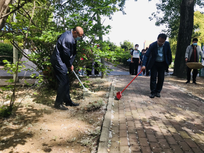 紫叶幸福,白兰含笑,杏花娇艳,海棠飘香,樱花灿烂,春天的南医校园生机盎然,置身南医校园不仅能感受到春的生机、花的娇艳,更能体验师生携手劳动的其乐融融。4月20日下午,我校“三个联系”第五工作组在校党委委员、副校长张胜海的带领下,来到护理系校园卫生责任区域开展校园环境卫生大扫除。护理系党总支书记宗山林、副书记李明哲、学工办主任张莹莹、全体辅导员与学生一起参加劳动。