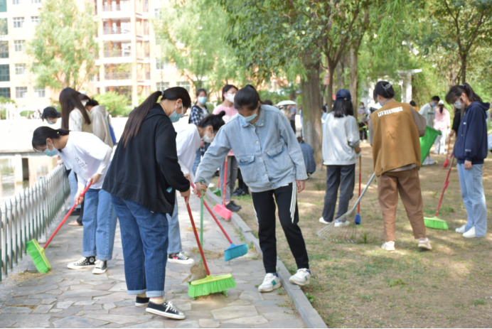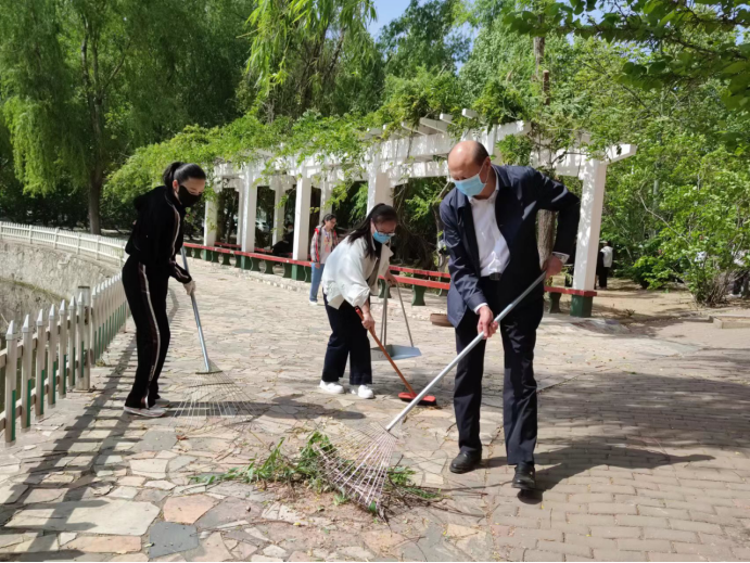 各级领导与广大师生在分工区域,一起拿起扫帚、耙子、箩筐等劳动工具,认真投入校园卫生大扫除活动。大家充分发挥不怕苦、不怕脏、不怕累的劳动精神,对卫生区域的柳絮、枯枝败叶、杂物等进行了仔细的清理,同时对校园卫生死角进行了认真地清扫。在劳动的过程中,学生们体会到劳动也是与班级同学一起共同生活的难忘经历,劳动过程中挥洒的汗水唤醒了疲惫的身躯,在劳动中体验到的各种乐趣,消除了疫情防控常态化管理下生活的枯燥,同时也感受到了团结协作的快乐。