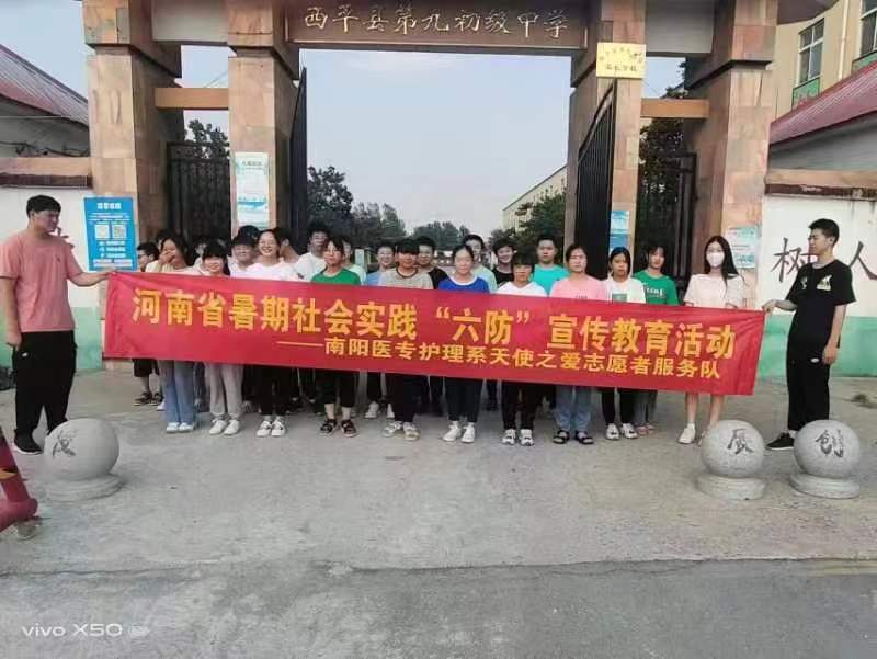 为积极响应团中央、校团委关于开展大学生暑期“三下乡”社会实践活动的号召,为助力乡村振兴做出积极贡献,南阳医学高等专科学校护理系天使之爱志愿者服务队的志愿者们在暑假期间深入各地乡村社区、中小学校,开展以防艾滋、防沉迷、防溺亡、防邪教、防性侵、防诈骗为主题“六防”宣传教育活动。