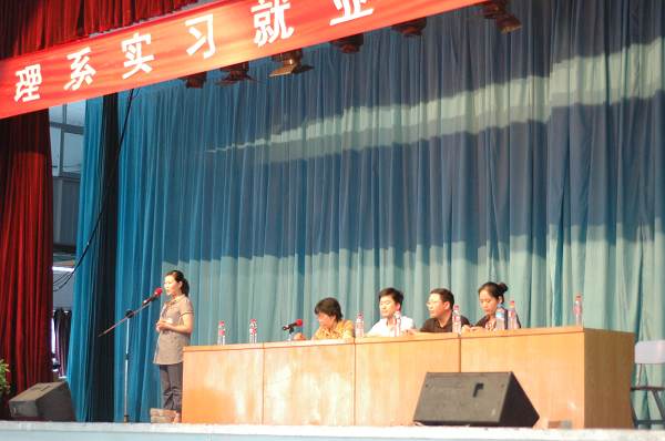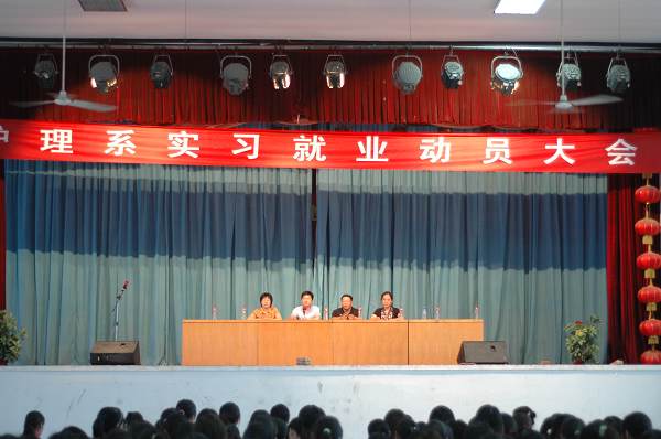 6月11日下午,护理系在主校区礼堂举办学生临床实习、就业动员大会,07普通专科学生参加了大会,副主任范真作动员报告,教务处实习科科长刘鹏和学生处就业科科长刘涛应邀参加并在大会上做报告,会议由系党总支书记孟晓红主持。