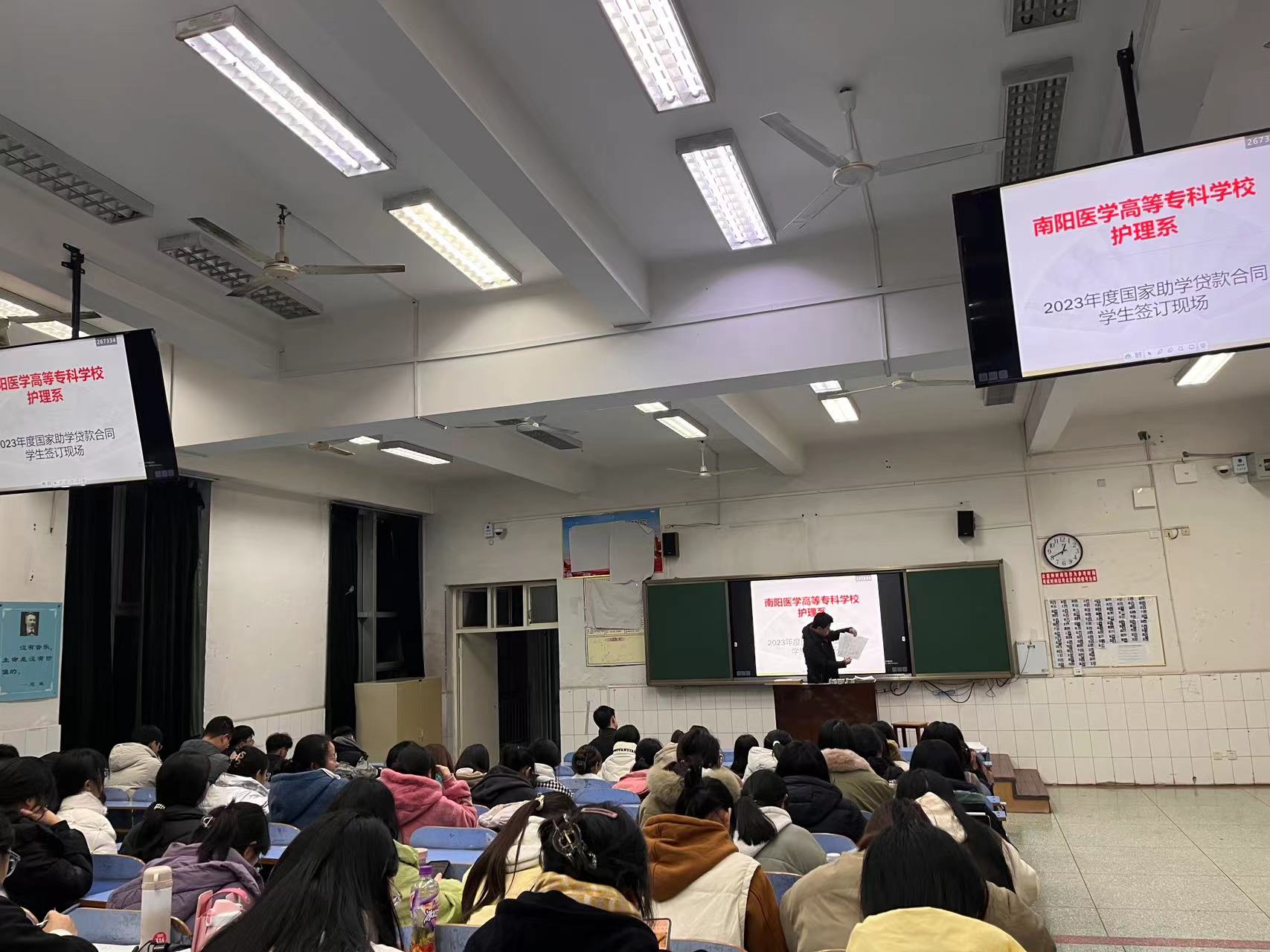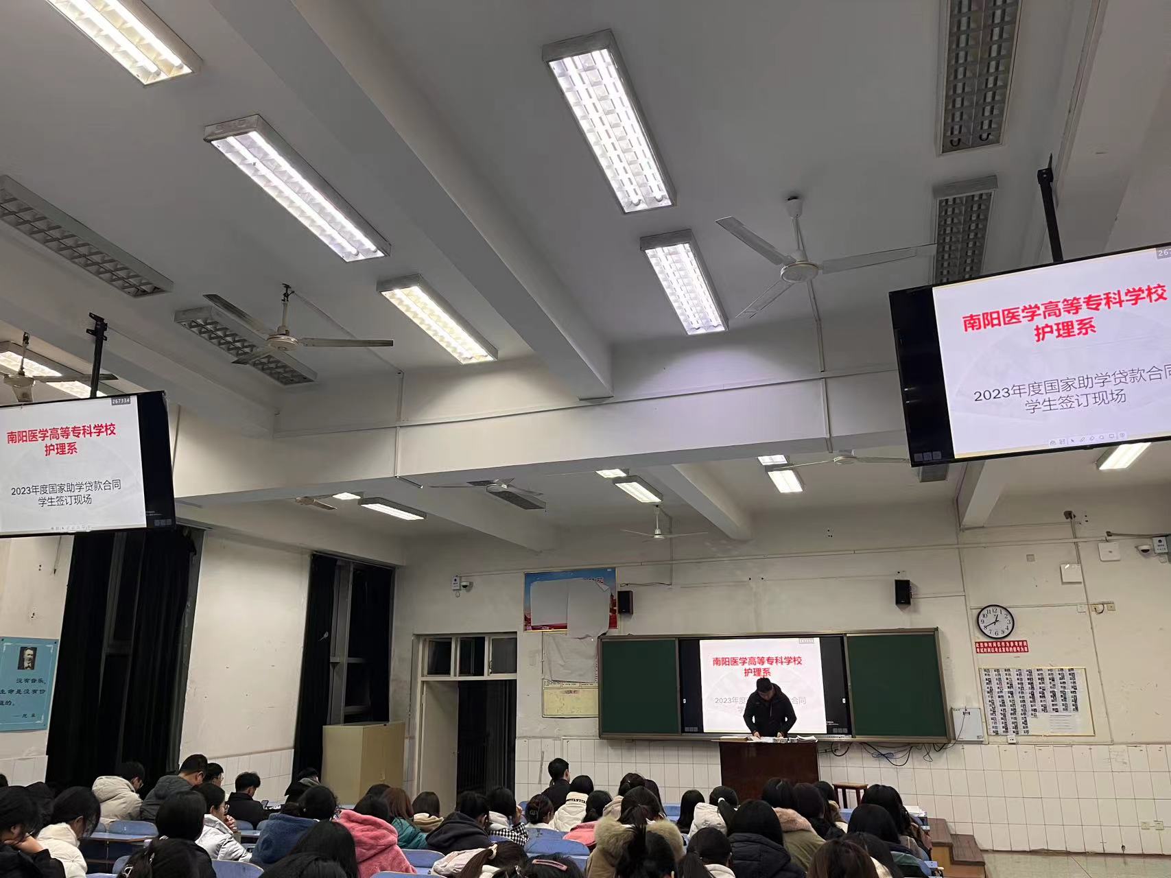 2023年11月9日,护理系资助专干魏小坤老师以及各班级学生干部于2号教学楼201教室组织704位高校国家助学贷款学生签订了2023年度高校国家助学贷款合同。