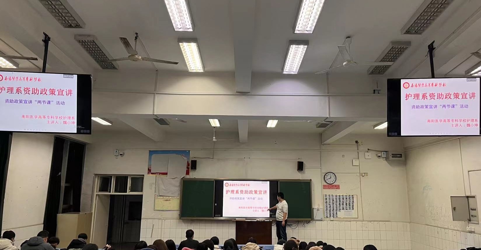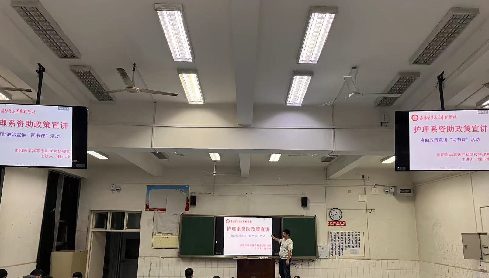 为进一步做好护理系学生资助政策宣传工作,让2023级新生更详细的了解国家高校资助政策,护理系于9月13日在2号教学楼201教室开展了“两节课”的资助政策宣讲会,会议由护理系资助专干魏小坤老师主持。