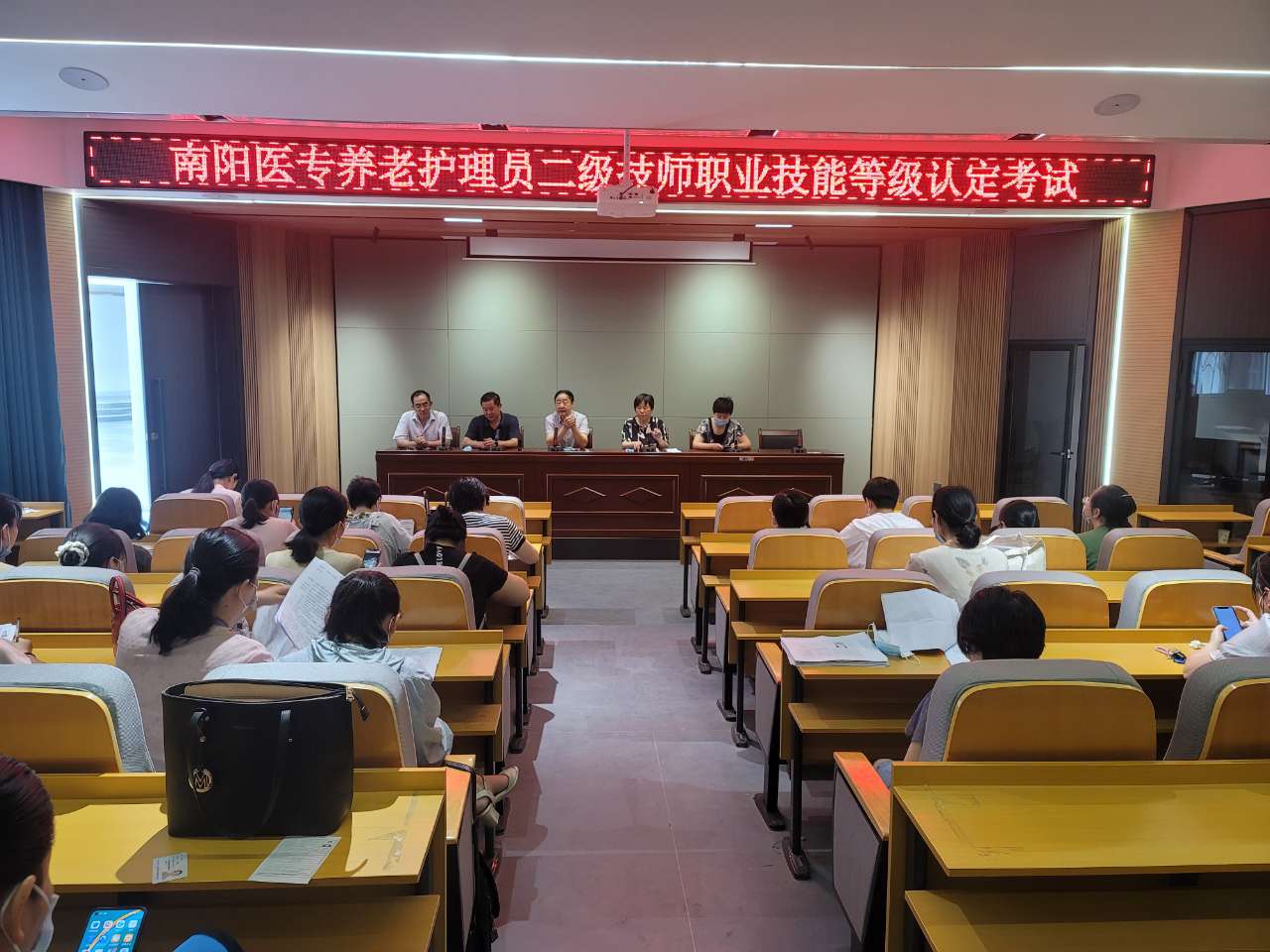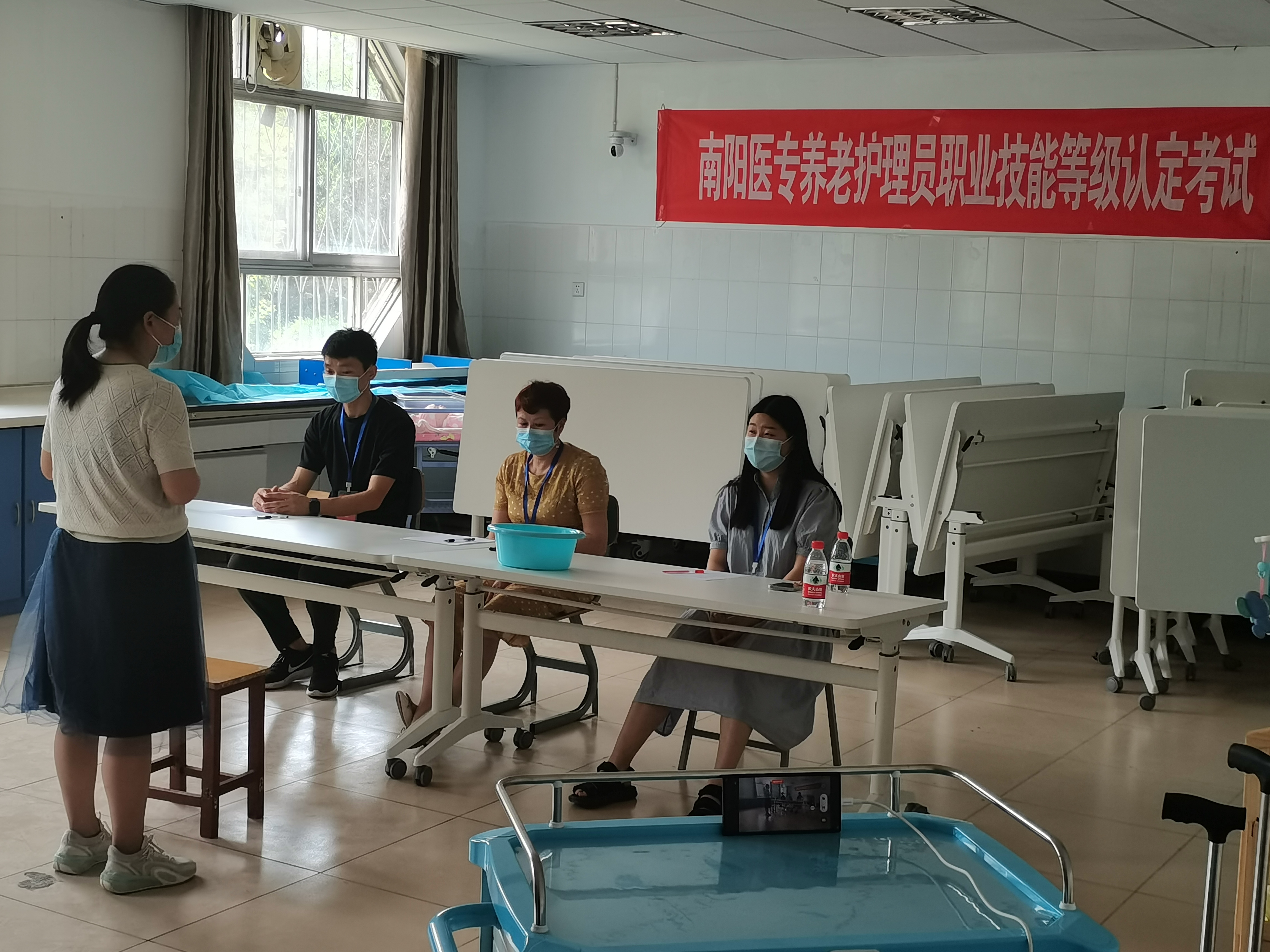 养老护理员二级技师职业等级认定考试按照国家养老护理员职业标准,围绕着规范养老护理员职业行为,提升养老护理员职业技能,提高养老服务职业化、专业化、规范化水平,更好满足养老服务需求进行考核。现场考试分为人机对话、理论笔试(职业道德与编写技能培训教案)、技能操作、面试答辩四个环节,老师们充分发挥自己的专业知识和经验沉着应试,有条不紊。考试全程接受河南省人力资源和社会保障厅的实时视频监控,市人社局和学校领导也到考场进行监督查看。经过一天紧张有序的考试,最终顺利通过了二级技师职业技能等级认定资格考试,为以后培养社会和学校养老护理员奠定了坚实的师资基础。