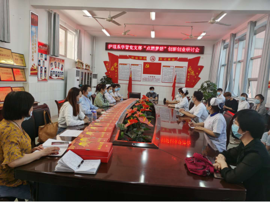 为切实提高大学生的创业精神、创业意识和创新创业能力,积极准备2020年河南省“互联网+”大学生创新创业大赛,2020年5月21日下午,护理系学管党支部在2号教学楼3楼党员活动室组织举办“点燃梦想”大学生创新创业研讨会。