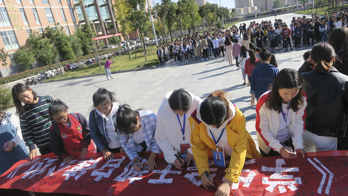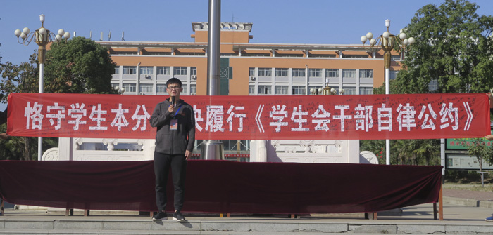 10月10日下午,校学生会全体成员及各系(部、院)学生会干部集体参加“南阳医专学生会履行《学生会干部自律公约》签名仪式”。全校学生会学生干部在恪守学生本质,坚决履行《学生会干部自律公约》的横幅上庄严签下自己的名字,承诺永保初心、恪守学生本质、扎扎实实为同学服务。
