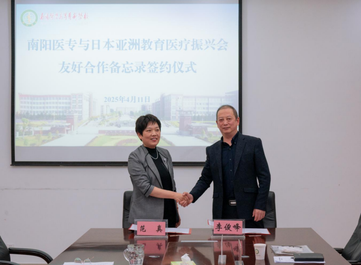范真指出,南阳医专作为中西医并重的综合性医学高等学校,拥有70余年办学积淀,师资、科研实力雄厚,已与多国院校建立了长期合作。此次与日方携手,将进一步提升专业建设的国际化水平,为师生搭建更广阔的发展平台。李俊峰表示,振兴会将发挥纽带作用,对接日本优质教育资源,推动学术交流及学生赴日留学、实习、就业,希望双方建立长期战略合作关系,扩大交流合作领域。在与会嘉宾的共同见证下,范真与李俊峰现场签署为期三年的合作备忘录。