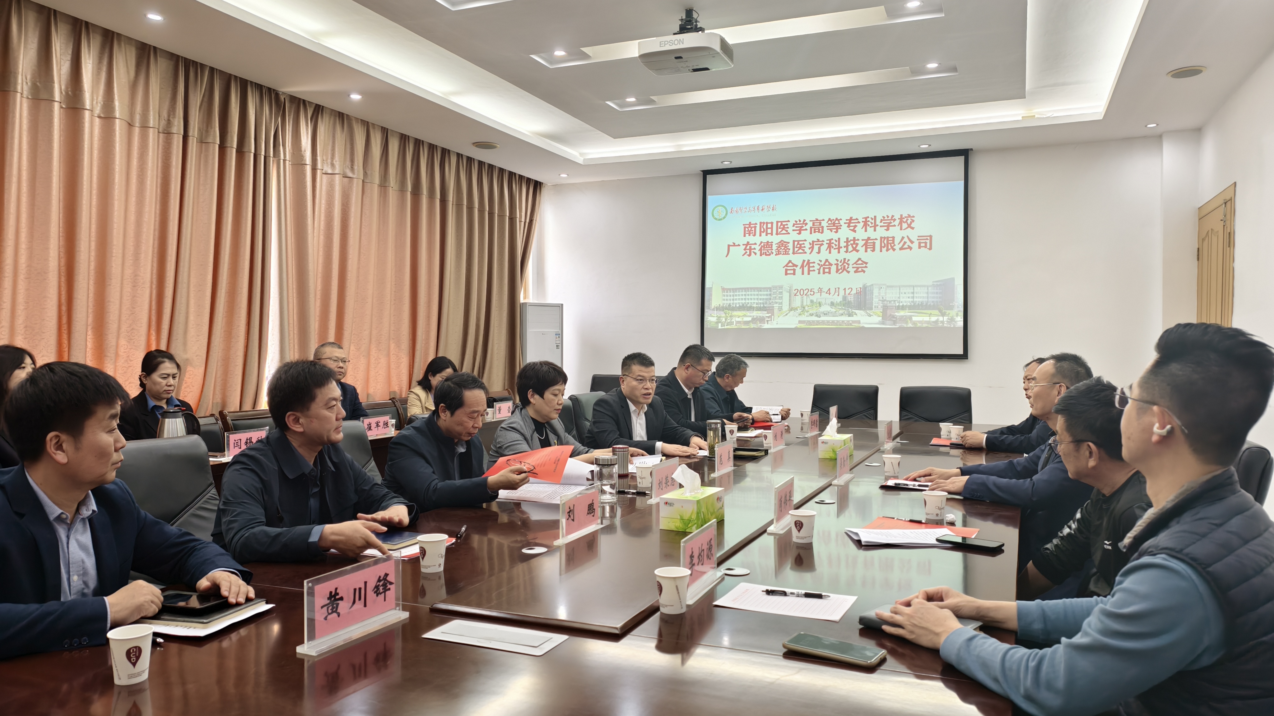 本网讯(文/医学技术系 宁绍爽)4月12日上午,广东德鑫医疗科技有限公司董事长吴勤仲携管理团队来校开展合作洽谈,就全国医疗装备运维行业产教融合共同体建设及校企协同育人开展深度磋商。校党委副书记、校长范真,校党委委员、副校长刘荣志,学校相关部门负责人参加。会议由校党委副书记刘涛主持。