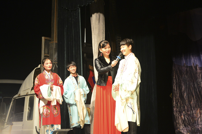 校党委宣传部部长王永科为演出致辞,他首先对省越调剧团演职员的光临表示热烈欢迎和衷心感谢,并阐述了开展戏曲进校园活动的重要意义,他希望同学们通过戏曲感受中国传统文化的博大精深,体会传统文化的独特魅力和风采,从而净化心灵,弘扬社会主义核心价值观、增强民族自信心。