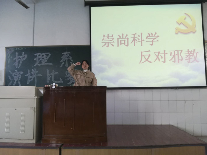 本次比赛通过初赛从全系2000多名学生中选拔12名选手参加,选手们的演讲,激情昂扬,语言生动,用大量鲜活的案例,深刻揭批邪教反人类、反社会、危害个人、危害家庭、危害社会的险恶用心,热情颂扬了“崇尚科学、反对邪教”的主题。经过激烈角逐,17普大助产班李丽一静和18普大护理6班陈甜甜同学获得本次演讲比赛一等奖,18普大护理2班闪利微等同学分获二等奖和三等奖。