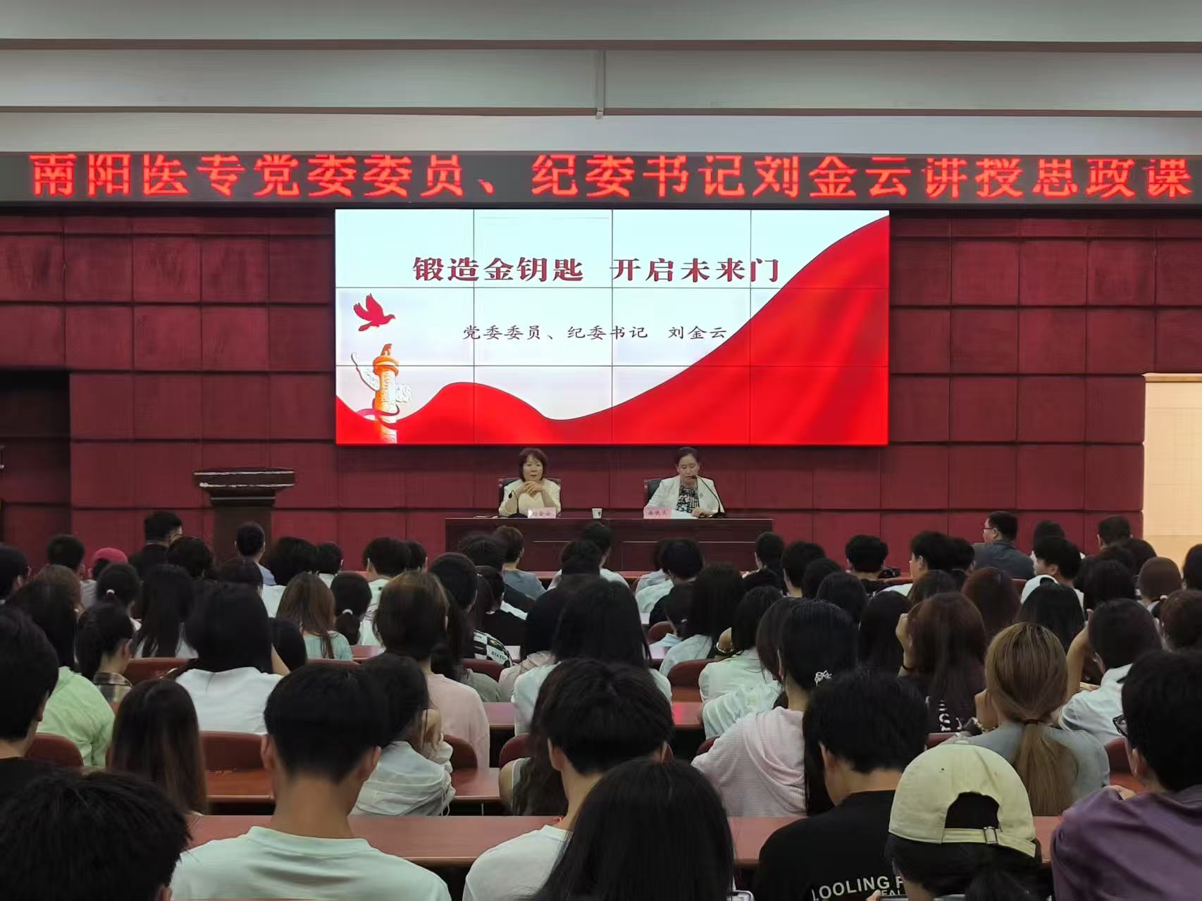 本网讯(文/国际教育学院 李冰)6月11日下午,纪委书记刘金云以“锻造金钥匙,开启未来门”为题在仲景西区图书馆五楼报告厅讲授思政课。学校相关部门负责同志及国际教育学院师生代表参加。