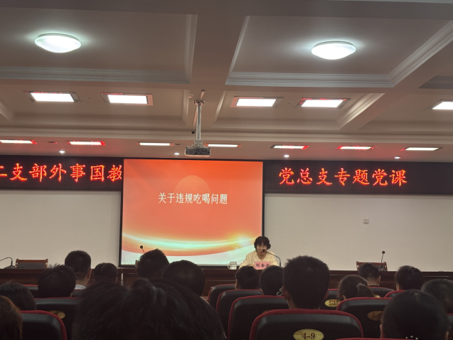本网讯(文/纪委办 路娇)6月18日下午,校纪委书记刘金云围绕违规吃喝、担当作为及工作请示报告三大议题,为机关二支部和外事国教党总支全体同志讲授专题党课。