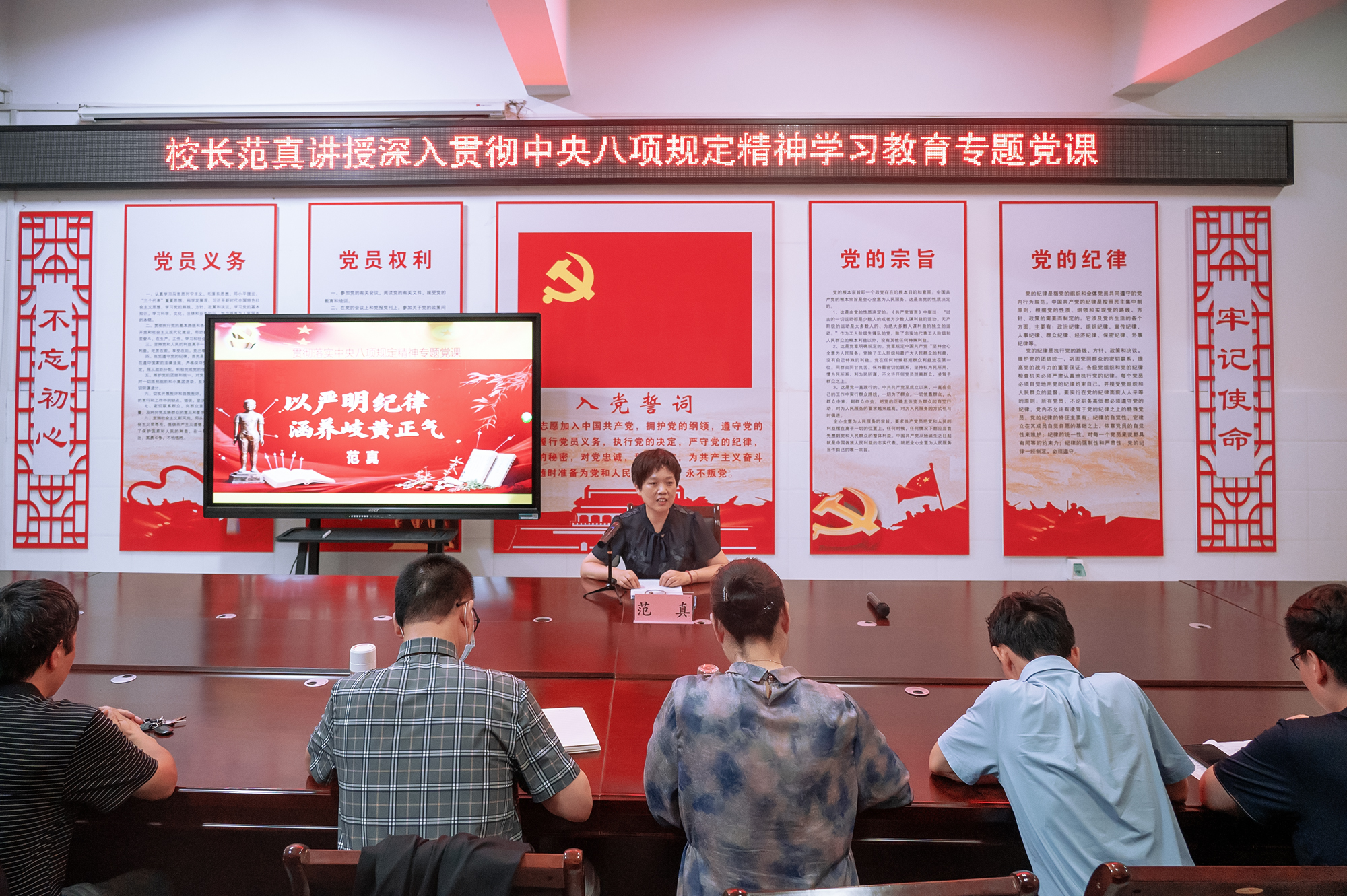 校长范真讲授深入贯彻中央八项规定精神学习教育专题党课