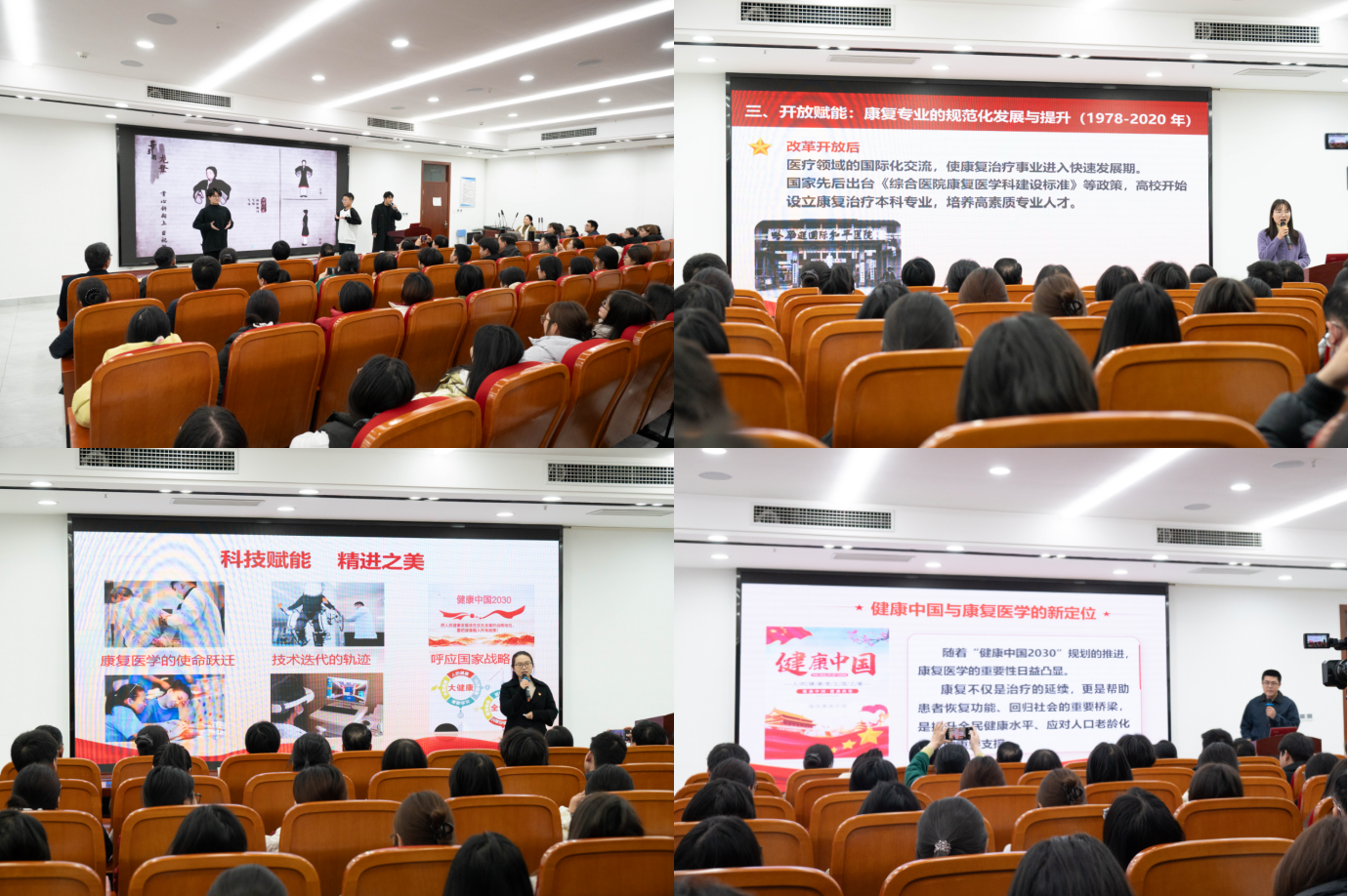 精进:精准赋能筑牢专业根基。授课内容紧扣“健康中国2030”战略部署,通过康复评定量表、作业治疗技术等专业展示,凸显“精准化、个性化、多学科协作”科学属性,激发学生科技报国情怀,实现价值引领与技能培养同频共振。
