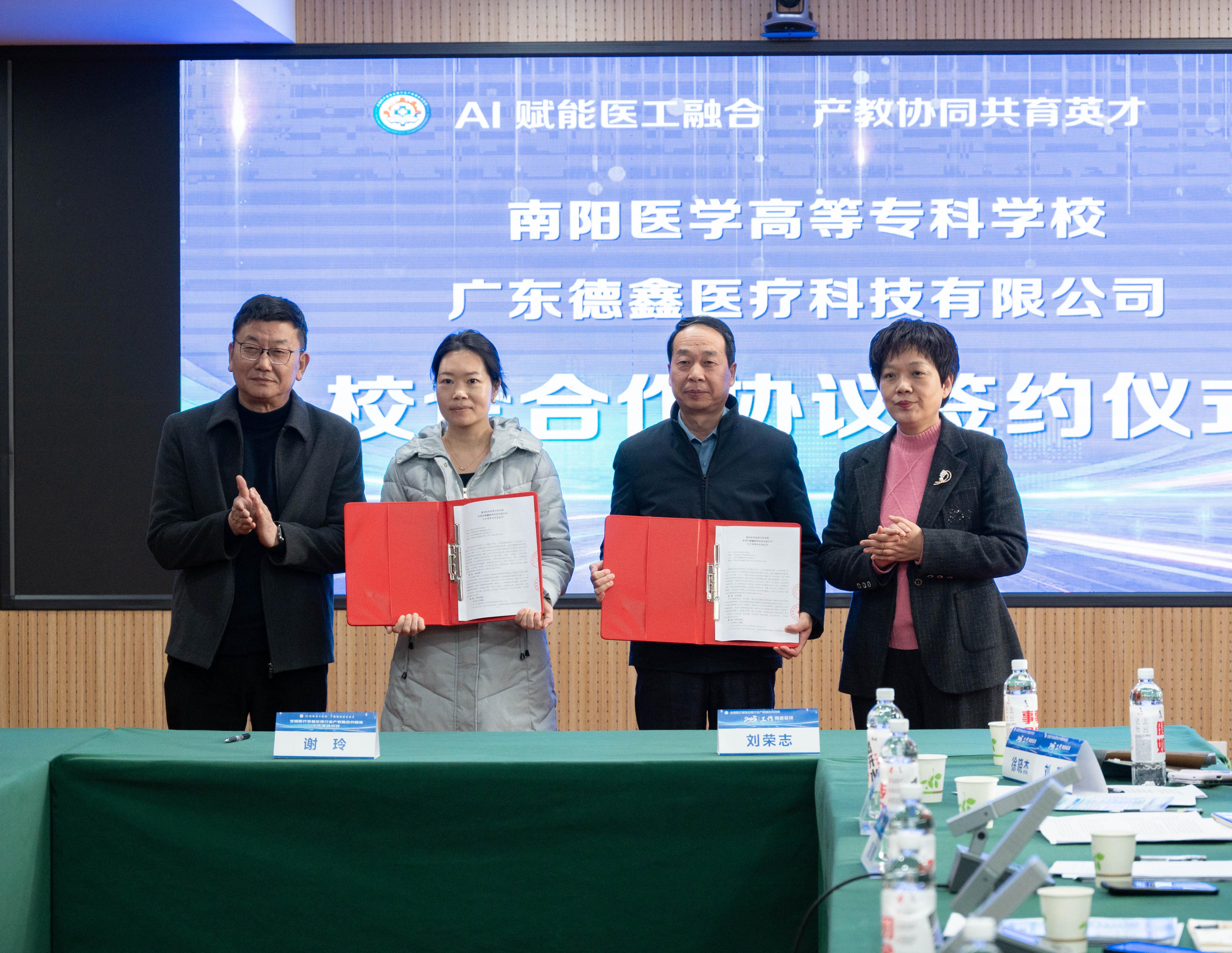 广东医科大学生物医学工程系主任马莎带来《AI时代医工融合创新人才培养的探索》专题分享;山东省立医院李广义就《医疗装备运维服务质量管理》教材编写工作展开详细介绍;广东德鑫医疗科技有限公司教育顾问肖伟平介绍了共同体拟举办医疗装备运维相关专业技能竞赛的初步方案。会议现场还举行了我校与广东德鑫医疗科技有限公司的人才培养合作协议签约仪式。此外,共同体秘书处及各工作委员会代表依次汇报了年度工作成效与下阶段工作计划。