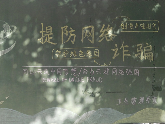 在9月18日网络安全宣传周校园日活动中,党委宣传部在校园主干道展出专题展板,图文并茂地展示了防电信诈骗、校园贷套路、电子邮件和无线网络安全使用注意事项等与大学生息息相关的内容,吸引了不少学生驻足浏览阅读。