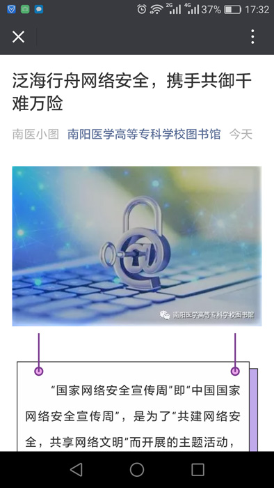 宣传周期间,我校充分利用校园网、微信、微博、宣传栏等校内媒体平台,大力宣传国家网络安全有关知识、主要成就等内容。