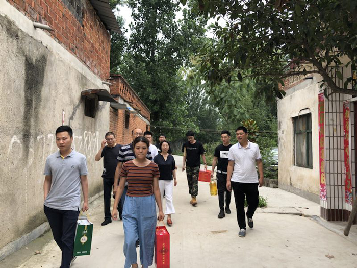 6月29日,张少羽书记、李弋院长、范卫杰副院长、习茵主任、全体辅导员及优秀班主任代表一行十人前往镇平县晁陂镇裴营村,对我院2017级建档立卡贫困生裴港莹进行家访。