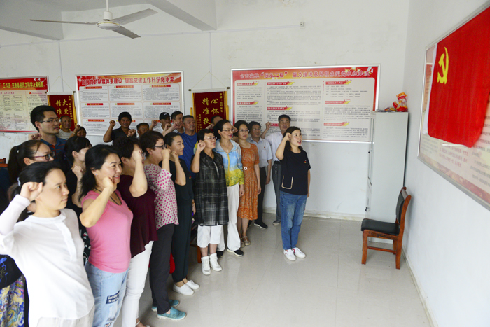 到达官坡岭村后,大家在村部重温了入党誓词。面对鲜红的党旗庄严宣誓,回忆自己入党心路历程,坚定了为共产主义事业奋斗终身的理想信念。大家表示,我们有幸处在新时代,一定要肩负起新时代的责任,在全面建成小康社会的征程上,在扶贫路上,不忘初心,牢记使命,努力奋斗,攻坚克难,向党和人民交上一份满意的答卷。