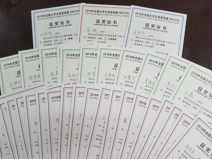 全国大学生英语竞赛是经教育部高教司批准、由教育部高等学校大学外语教学指导委员会和高等学校大学外语教学研究会联合主办的全国唯一的大学生英语综合能力竞赛,旨在配合教育部高等教育教学水平评估工作,贯彻落实教育部关于大学英语教学改革精神,促进大学生英语水平的全面提高。今年,我校共有376人参赛,70名学生获奖,其中国家级特等奖1人,一等奖2人,二等奖11人,三等奖19人,优秀奖37人。