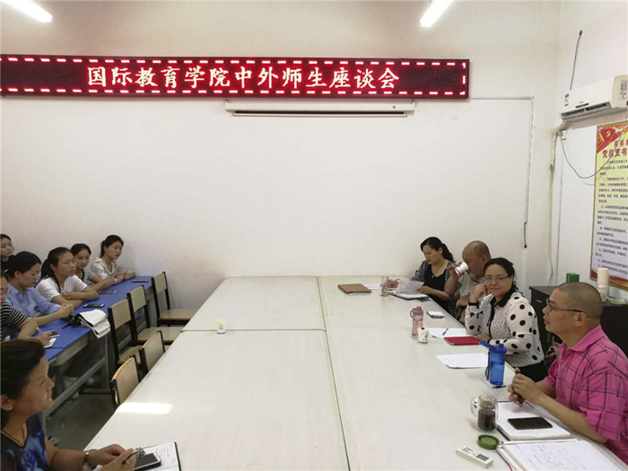 随后又召开了中外师生座谈会。学生说,外教注重与学生活动、课堂氛围活跃,极大激发了学生们在课堂上的积极性与参与度。两位外教鼓励学生认真学好专业课程、学好英语,为将来出国留学、就业打下基础。