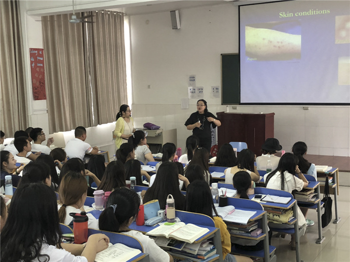 两位教授分别为国际教育学院护理、影像专业学生进行专业课授课,内容涉及健康评估、影像解剖、核医学等等理论和实训操作内容。两位教授授课期间,国际教育学院和相关系部有关领导、教师跟班听课学习,安排翻译,及时沟通协调。医教室还专门组织专家对两位外国教授进行随堂听课活动。