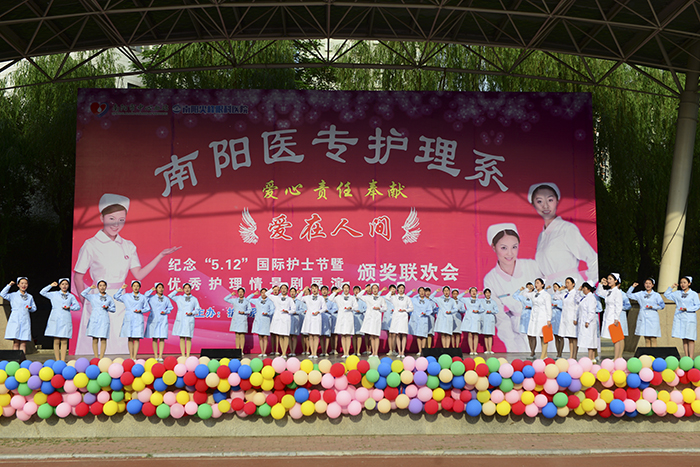 本网讯(文/护理系 李明哲)阳光明媚灿烂,鲜花芬芳娇艳,在这个美丽的五月,我们又迎来了一年一度的“5.12国际护士节”。为深入弘扬南丁格尔精神,充分激发护理教育工作者和广大护生全心全意为人民服务的工作热情,表彰奖励在教育教学和专业学习上取得突出成绩的先进典型,5月8日下午,护理系在我校田径运动场隆重举办了纪念“5.12”国际护士节暨优秀护理情景剧展演颁奖联欢会。副校长逵应坤、校纪委书记张国良、副校长郭万周、校工会主席田端、各处室领导和护理系全体师生共2000余人参加了庆祝活动。