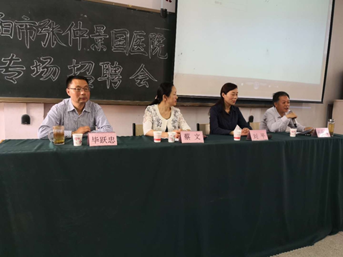 本网讯(文/针骨系 逵建澍)5月10日下午,针灸骨伤系在1号教学楼北505教室举行南阳市中医院专场招聘会。市中医院人事科科长刘平、医教科科长蔡文参加招聘工作。针灸骨伤系全体党政领导班子成员、辅导员和毕业班班主任以及2015级毕业生、2016级南阳籍实习生130余人参加会议。