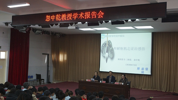 本网讯(文/中医系 张军会)为进一步营造浓厚的学术氛围,优化育人环境,激发师生创新、学习热情,3月29日,中医系特邀省知名中医专家、南阳医专二附院副院长忽中乾主任医师作学术报告,报告会在校新东区学术报告厅举办。中医系书记张明丽、副主任肖跃红和中医系400余名师生参加报告会。