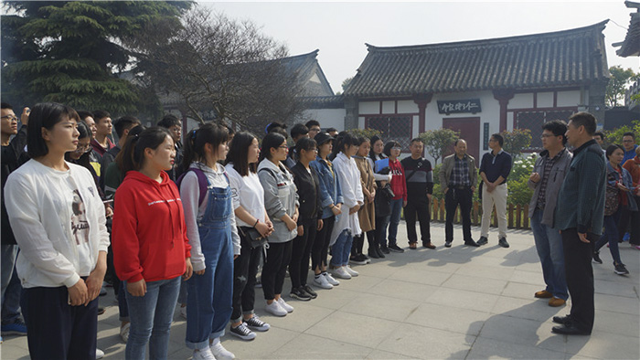 本网讯(文/中医系 孙立)为更好的继承发扬仲景思想文化内涵,2018年4月1日上午,中医系党总书记张明丽,辅导员孙立老师带领2017级“仲景实验班”学生到南阳医圣祠祭拜医圣张仲景。