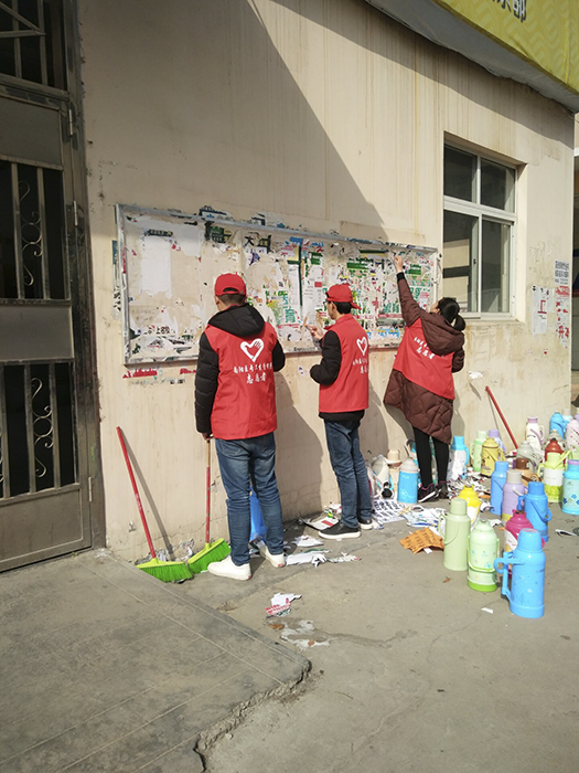 本次活动卫生管理系的志愿者们统一着装,精神抖擞。本着不怕苦,不怕累的精神,清洁校园卫生,清理小广告。