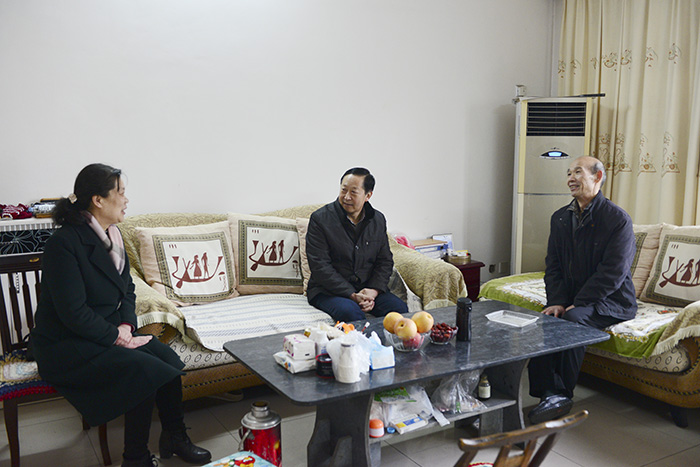 本网讯(文/离退处 艾静)为了弘扬中华民族尊老、敬老、助老的传统美德,2018年新春佳节来临之际,在家的校领导带队,在离退处同志的陪同下,冒着细雨严寒看望慰问了部分老领导、离休干部、生病住院、家庭困难的老同志,向他们送去节日的问候并致以新春的祝福。