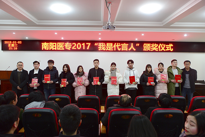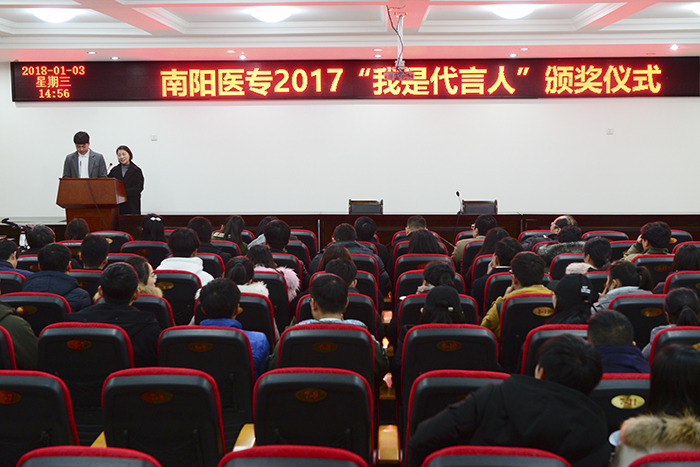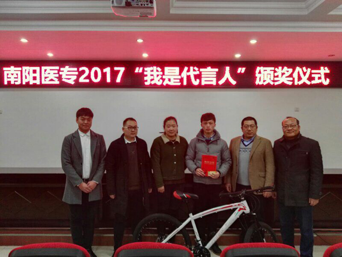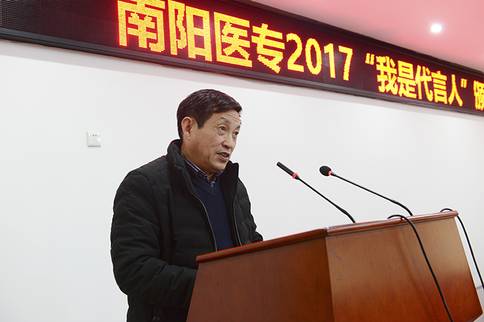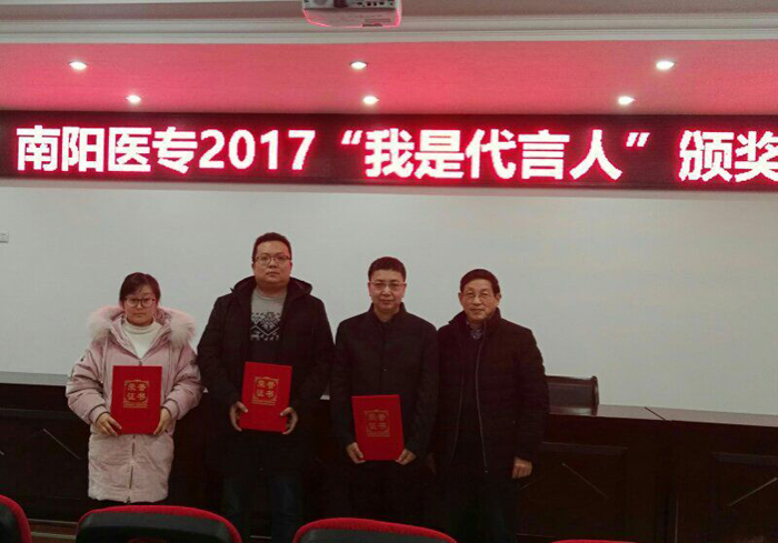 校党委宣传部部长王永科首先向获奖选手表示热烈祝贺,向南阳晚报和各赞助单位的大力支持表示衷心感谢。他指出,本次“代言人”大赛是我校校园网络文化建设的一次很好探索与尝试,大赛的成功举办既体现了各系(部、院)高效的工作效率和团结协作、拼搏进取的医专精神,也展现了当代医学生的青春活力和昂扬向上的精神品质,树立了学校的良好社会形象。这既是一次评选活动,也是一次宣传教育活动,是一种潜移默化的教育方式,是一种激励我们前进的主旋律、正能量。他勉励获奖同学们,既要树立远大理想,更要脚踏实地,不放过每一个锻炼成长的机会,用中国梦激扬青春梦,不断实现自我、超越自我,成为一名出色的“医学代言人”!